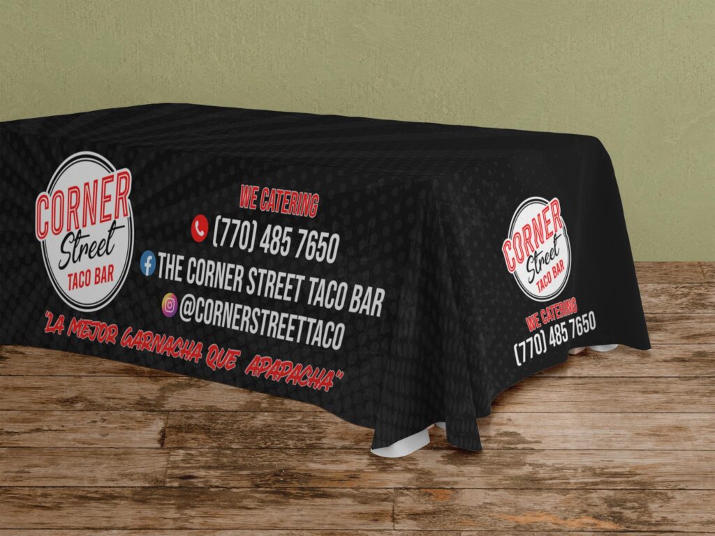Printed tablecloths for fairs, booths, or restaurants